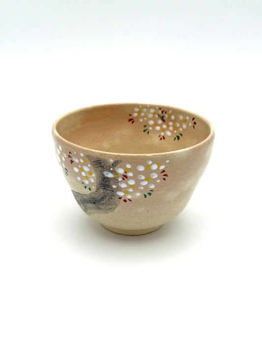 Kyo Yaki (Ware) Matcha Bowl Hand Painted Cherry Blossom