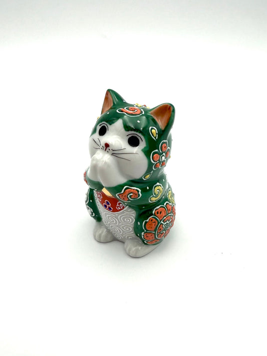 Kutani Yaki (Ware) Praying Cat (Light Blue)