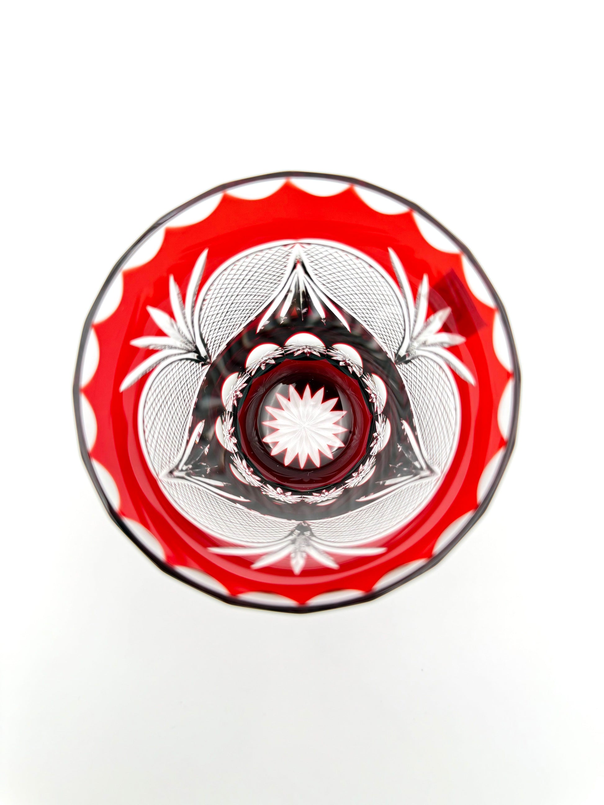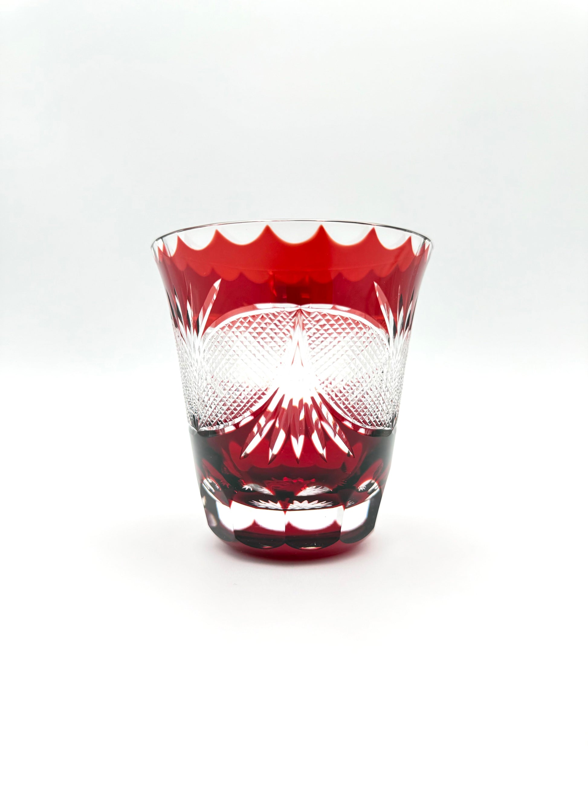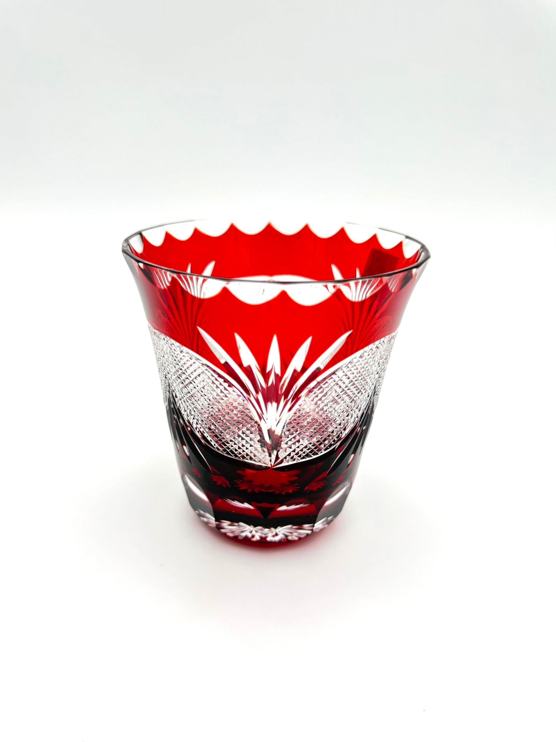 Edo Kiriko Hand-Cut Crystal Shochu Glass in Wooden Gift Box(Red)