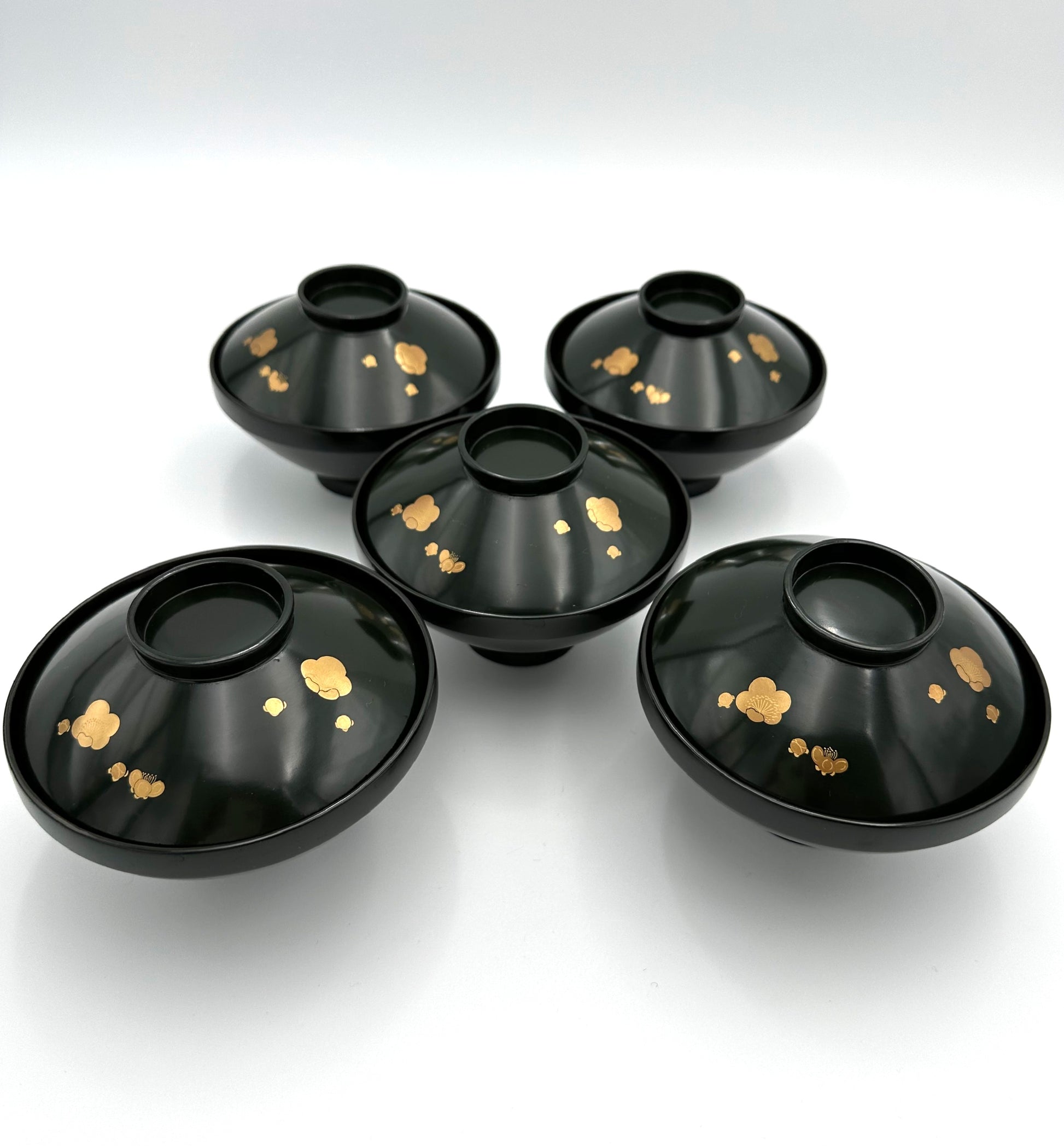 Meiji Era Wajima Lacquerware Blue Lacquer Bowl (5 pieces)