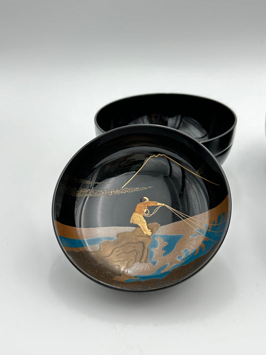 Wajima Lacquerware Bowl with Five Views of Mount Fuji Illustration by Kihachi (5 pieces)